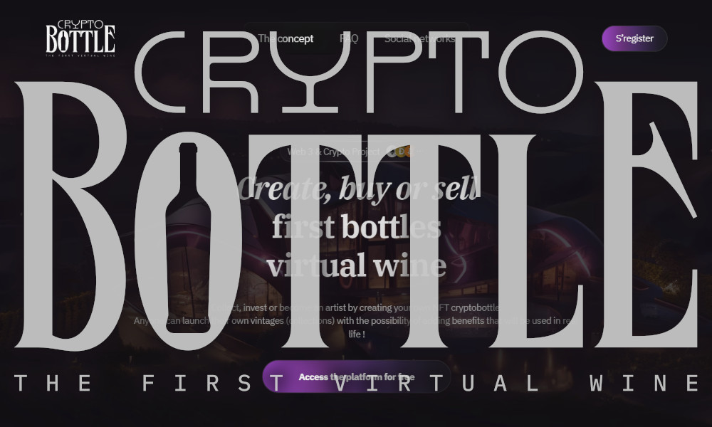 "Create, buy or sell first bottles virtual wine. Collect, invest or become an artist by creating your own NFT cryptobottle. Anyone can launch their own vintages (collections) with the possibility of adding benefits that will be used in real life!"