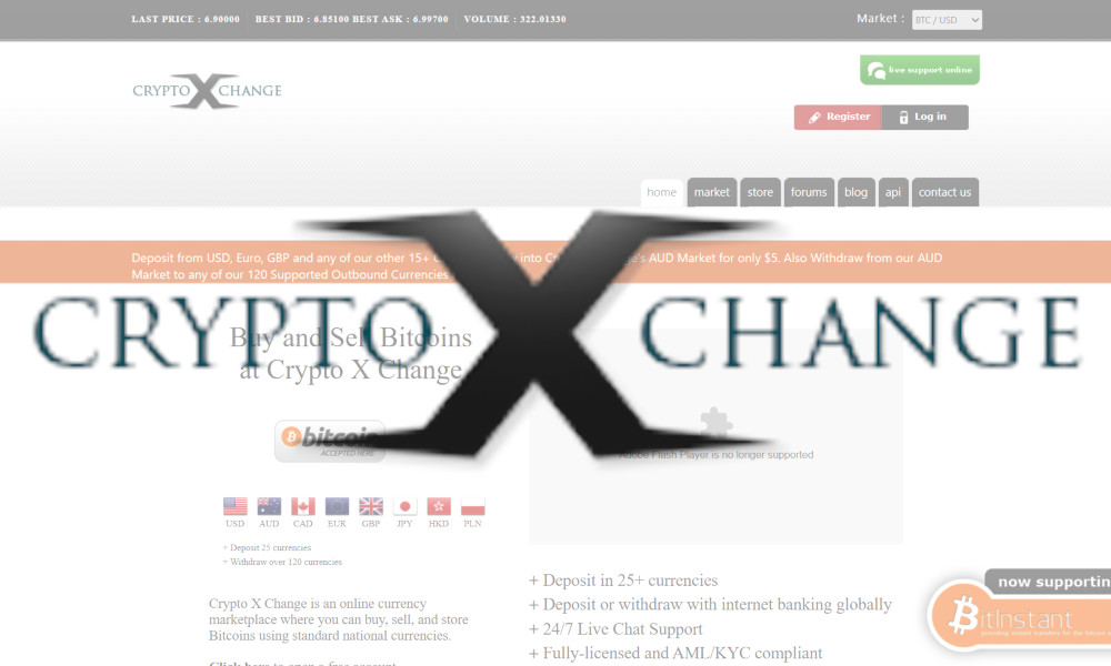 "Crypto X Change is an online currency marketplace where you can buy, sell, and store Bitcoins using standard national currencies."