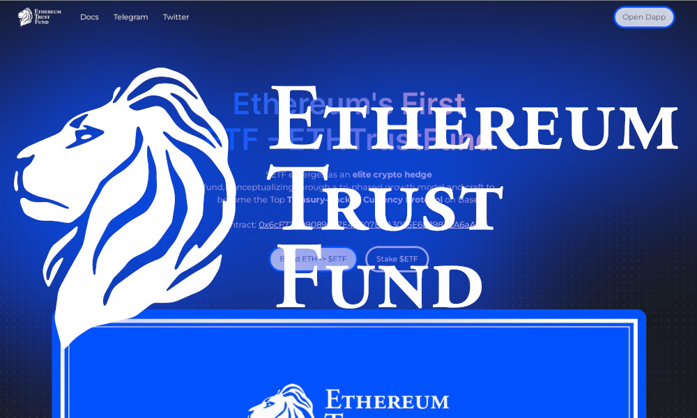 "Ethereum's First ETF - ETHTrustFund $ETF emerges as an elite crypto hedge fund, conceptualizing through a tri-phased growth model and craft to become the Top Treasury-Backed Currency Protocol on Base."