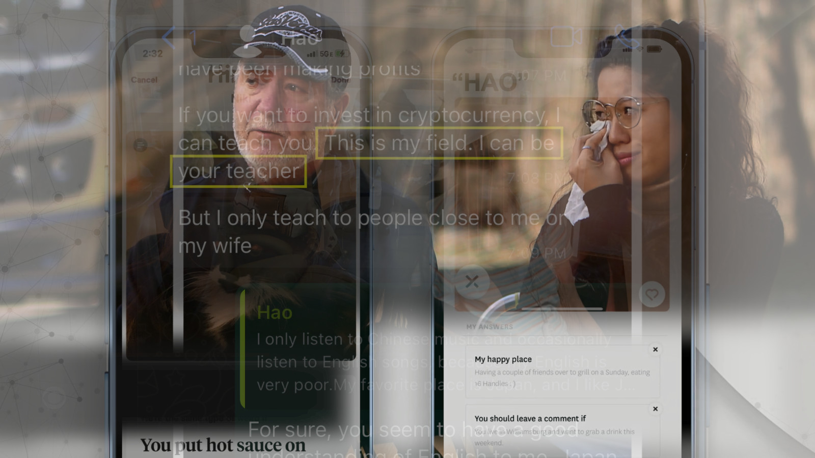 "I'm like, 'I've never invested in my life.' I don't know anything about cryptocurrency either. So I was very skeptical," she said. Hutchinson said that Hao reassured her that this was an area he knew well.