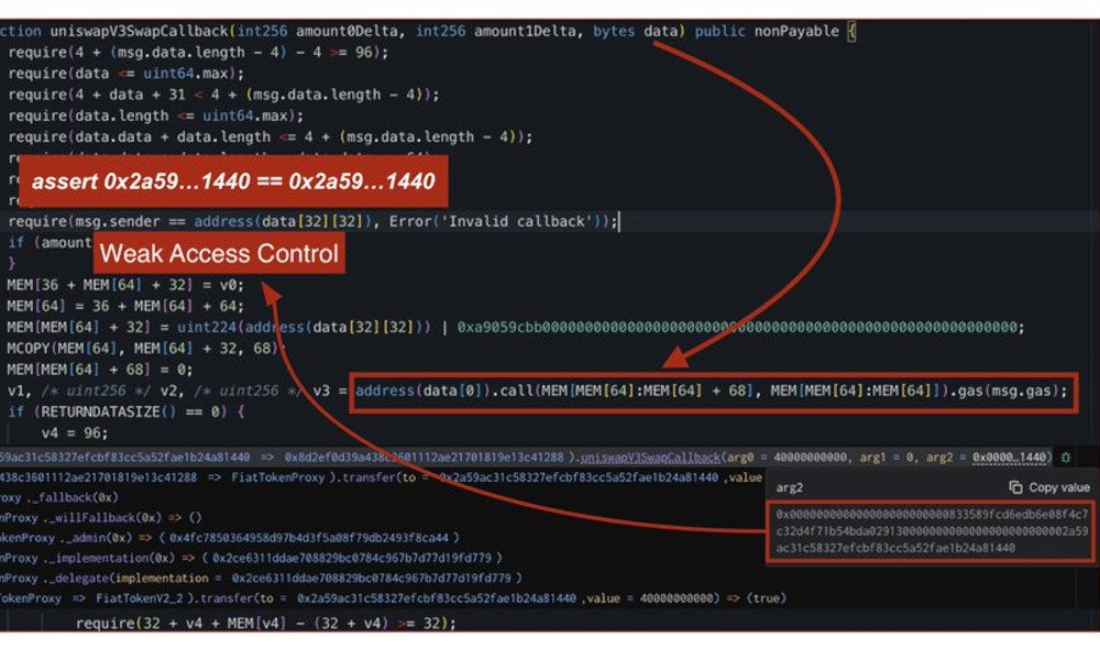 The broader issue here is a design pattern that fails to account for the trust boundaries in DeFi. While Uniswap V3 gives developers flexibility, it assumes implementers will enforce strict controls in their uniswapV3SwapCallback logic. When they don't—whether due to oversight or incorrect assumptions—the results are catastrophic. In this instance, what may have seemed like a reasonable design backfired entirely. The attacker didn’t break the rules—they simply played by the ones left exposed. Going forward, developers must validate the msg.sender as a known, trusted pool created by the Uniswap V3 factory and rigorously verify swap parameters to ensure they match expectations. Anything less is an open invitation for exploits.