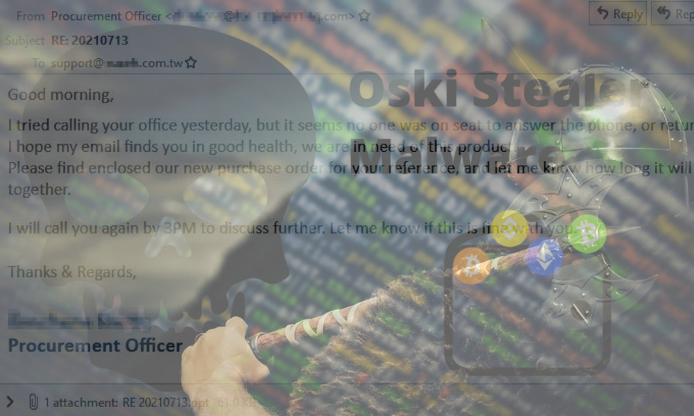 The Oski Stealer is a malware which steals private information of the user, including crypto wallet details. It typically spreads by created targeted phishing attacks to trick the recipient into downloading an infected Microsoft Office file (such as PowerPoint). Once the file is downloaded, that installs malware which obtains data and can also launch other "command and control" functions. While the software does target many cryptocurrency wallets, it's unclear how successful the attacks have been as it tends to target unsophisticated business workers and not crypto users who would typically use such wallets.