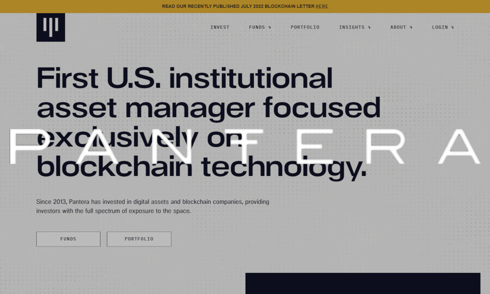 "Since 2013, Pantera has invested in digital assets and blockchain companies, providing investors with the full spectrum of exposure to the space." "Pantera launched the first cryptocurrency fund in the U.S. when bitcoin was at $65 /BTC in 2013. The firm subsequently launched the first blockchain-focused venture fund. Pantera co-CIO Joey Krug co-founded Augur, one of the first decentralized applications built on Ethereum. In 2017, Pantera was the first to offer an early-stage token fund."