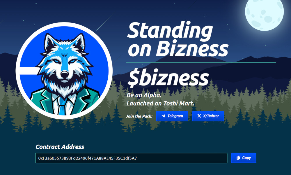 "Standing on Bizness" is a $bizness token launched on the Base blockchain on November 20th. To join the community, you can connect through their Telegram and X/Twitter channels. The contract address for $bizness is 0xF3a605573B93Fd22496f471A88AE45F35C1df5A7.