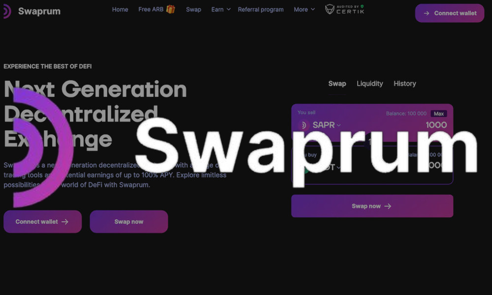 "Swaprum is a next-generation decentralized exchange with a range of trading tools and potential earnings of up to 100% APY. Explore limitless possibilities in the world of DeFi with Swaprum."