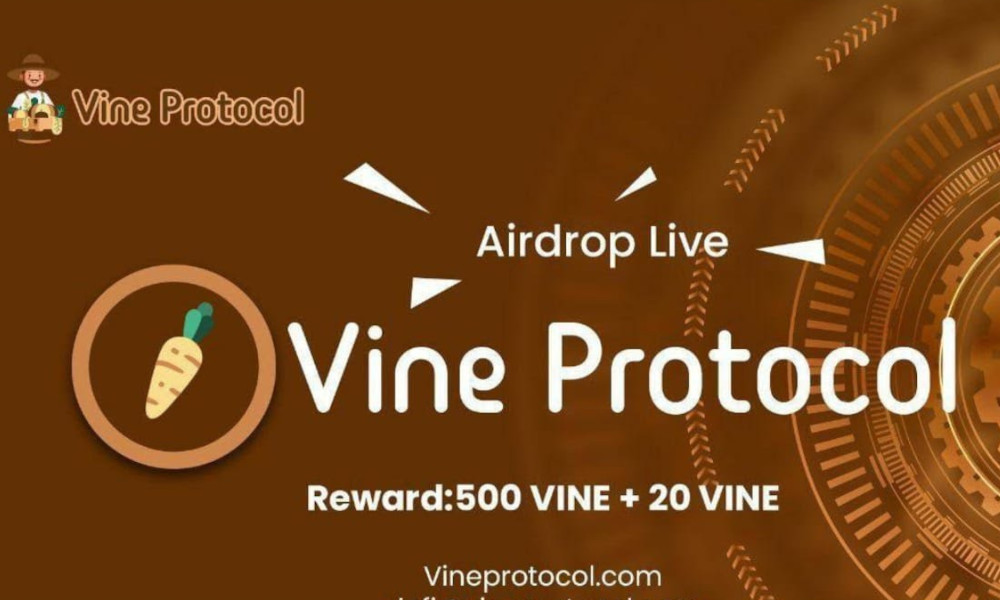 "VINE Protocol is airdropping 500 VINE to airdrop participants." "Vine Protocol is launching a crypto Airdrop program to community. Join the Airdrop campaign and complete tasks, You will earn free 500 VINE Tokens with an estimate value of $250."